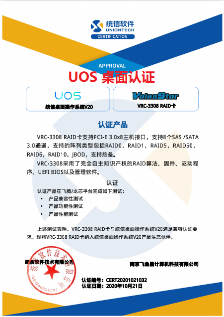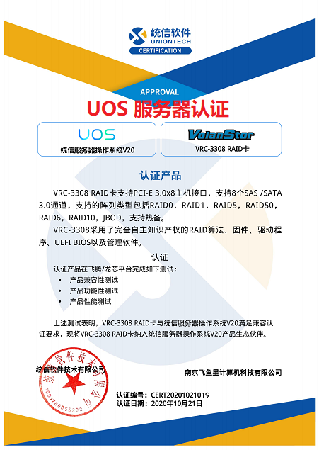 自主知識產(chǎn)權(quán)的 RAID 算法、固件、BIOS、驅(qū)動和管理軟件 硬件元器件、PCB、貼片等國產(chǎn)化率可以達到雙九五標(biāo)準(zhǔn) 支持中標(biāo)麒麟、銀河麒麟、UOS 等國產(chǎn)操作系統(tǒng) 可支持國科、百熬、昆侖等國產(chǎn)固件 支持龍芯、申威、飛騰等國產(chǎn)處理器 可以通過篩選獲得寬溫產(chǎn)品